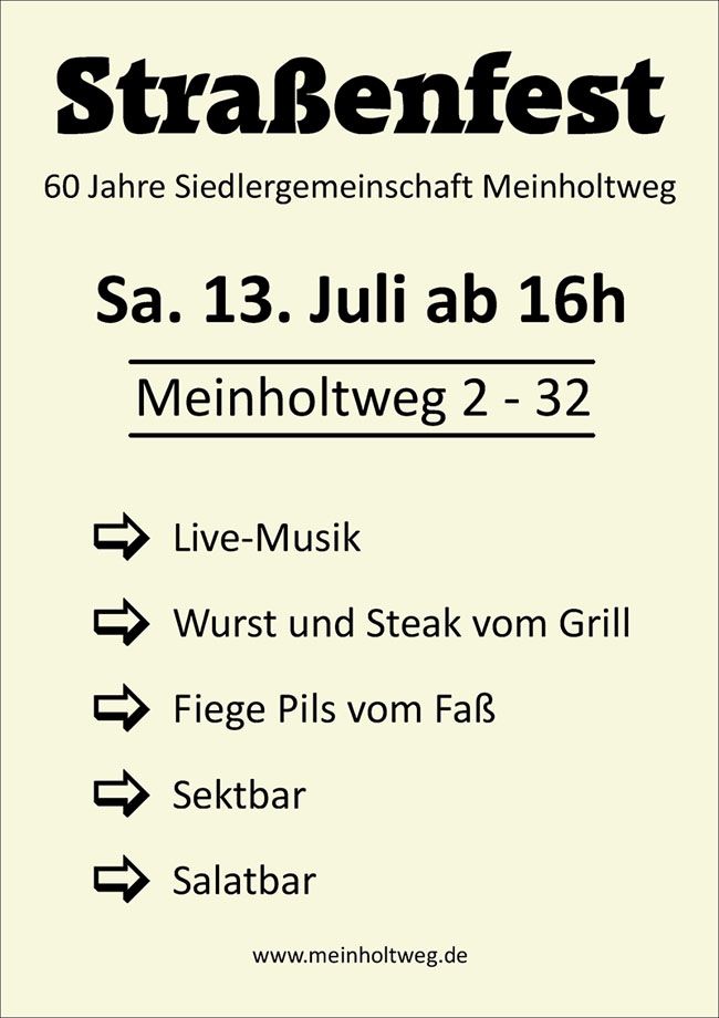 Am 13.07.2013 haben wir zum 60-jährigen Bestehen der Siedlergemeinschaft ein großes Straßenfest gefeiert. Hier ist die Fotogalerie